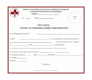 Avizul anual de liberă practică – se eliberează numai asistenților medicali care lucrează și are valabilitate până la sfârșitul anului.